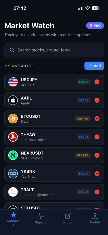 Navigate effortlessly through charts, signals, and alerts with a modern interface.